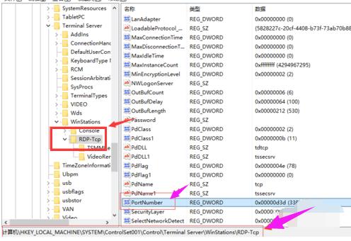 桌面電腦圖解3 在注冊(cè)表編輯器中找到以下PortNamber鍵,改為要使用的遠(yuǎn)程端口,如10000。 HKEY_LOCAL_MACHINE\SYSTEM\CurrentControlSet\Control\Terminal Server\Wds\rdpwd\Tds\tcp\