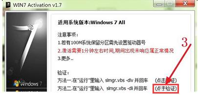 win7電腦圖解5 再次打開WIN7 Activation激活工具,點擊“點擊驗證”