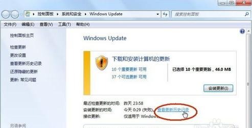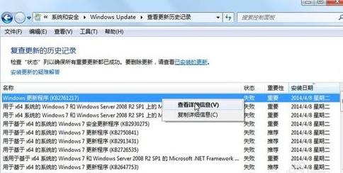 Windows 7,中文名稱視窗7,是由微軟公司(Microsoft)開發的操作系統,內核版本號為Windows NT 6.1。Windows 7可供家庭及商業工作環境:筆記本電腦 、平板電腦 、多媒體中心等使用。和同為NT6成員的Windows Vista一脈相承,Windows 7繼承了包括Aero風格等多項功能,并且在此基礎上增添了些許功能。 最近有網友跟小編留言說w7系統更新失敗。不能自動修補系統漏洞。今天小編用一分鐘教會你如何輕松解決w7系統更新失敗問題。如果有一樣w7系統更新失敗的網友們,就跟著小編的腳步一起學習吧。 1、根據提示安裝更新,安裝完畢后如果有失敗的,那就查看失望的記錄,查看任何一個都行,
