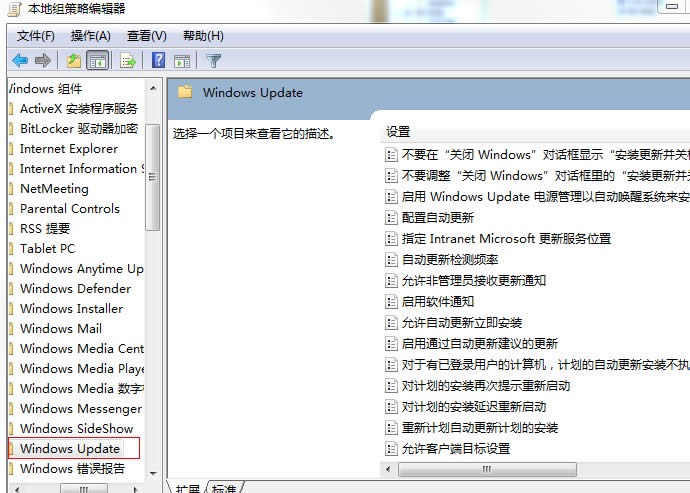 接下來,我們在本地組策略編輯器左邊依次打開計算機(jī)配置-管理模板-Windows組件,雙擊打開Windows Update進(jìn)行配置。