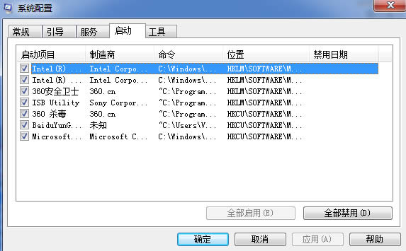 在彈出來的窗口中,我們在上方的任務欄中找到啟動項,然后看看下面的內容,如果有出現網址或者是文件的后綴是.url、.html、.hta和.htm的都去掉。這樣就可以將開機啟動中帶有網址的啟動項去除了。