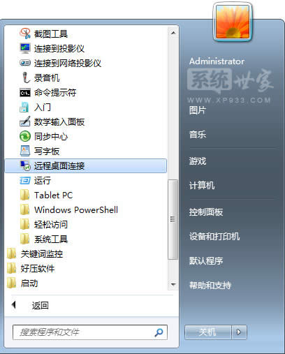 首先在win7系統桌面中依次單擊windows7系統下載桌面的“開始”/“程序”/“遠程桌面連接”命令,打開遠程桌面連接程序界面;
