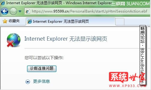 Windows 7中Internet Explorer會出現無法顯示該網頁