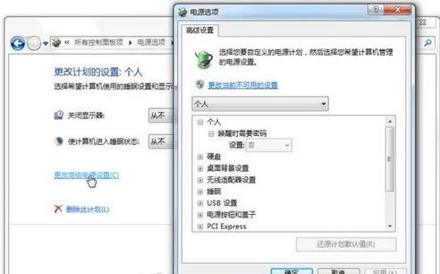單擊“創建”按鈕之后,新的電源計劃會出現在“電源選項”面板中。在創建好后,用戶還需要單擊新的電源計劃右邊的“更改電源設置”鏈接,在“編輯計劃設置”面板單擊“更改高級電源設置”鏈接,這時會打開“電源選項”對話框,如下圖所示。