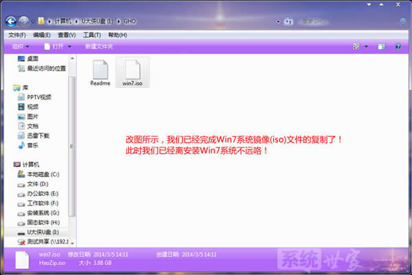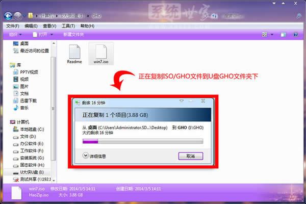 復(fù)制win7系統(tǒng)iso鏡像包到u盤GHO文件夾內(nèi)完成