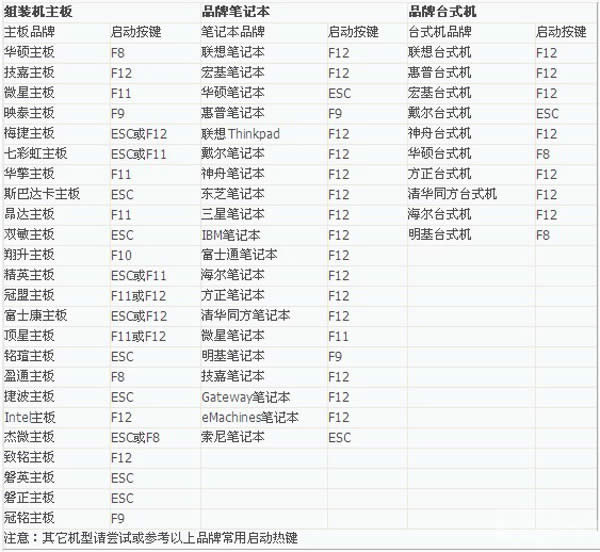 至于一鍵進(jìn)入U(xiǎn)盤啟動(dòng)的示例教程,不同的電腦,一鍵進(jìn)入的快捷鍵也可能不一樣。所以小編整理了各種品牌主板一鍵進(jìn)入u大俠的快捷鍵,我們可以在下面的列表中查找自己相應(yīng)的主板品牌,然后就可以看到該主板的一鍵啟動(dòng)u大俠的熱鍵了。