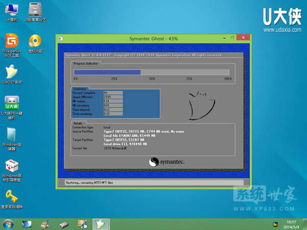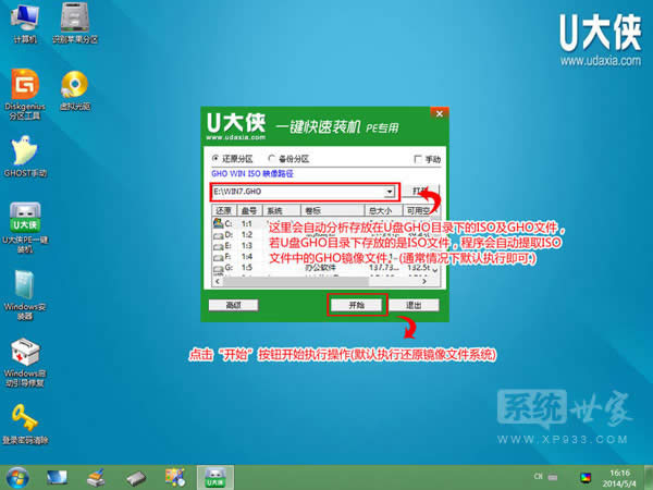 【第三步】進(jìn)入U(xiǎn)大俠Win8PE系統(tǒng)后運(yùn)行“U大俠PE一鍵裝機(jī)”工具,安裝GhostWin7系統(tǒng)!