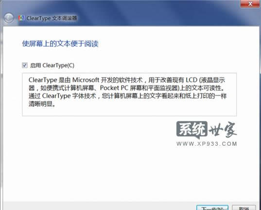 1. 在第一個(gè)頁面上選中“啟用ClearType”復(fù)選框
