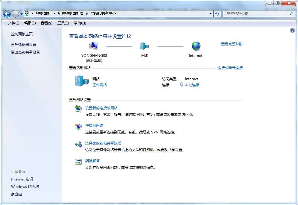 如圖就是網絡和共享中心的頁面,可以在這里查看基本網絡信息并連接設置和更改網絡。