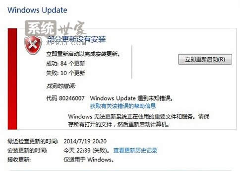 Win7筆記本系統自動更新"80246007"錯誤的解決辦法