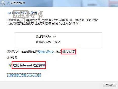 (2)如果要共享Internet連接,請(qǐng)選擇“啟用Internet連接共享”即可,如圖所示: