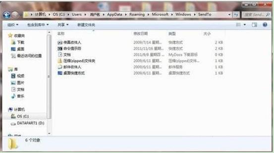 4、在SendTo文件夾里面,就是右鍵菜單中的操作選項(xiàng),用戶可將一些不經(jīng)常用到的右鍵菜單選項(xiàng)清理掉。