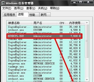 按住快捷鍵(Ctrl+Alt+Del)調(diào)出 Windows任務(wù)管理器 →選擇 RTHDCPL.EXE→結(jié)束進(jìn)程