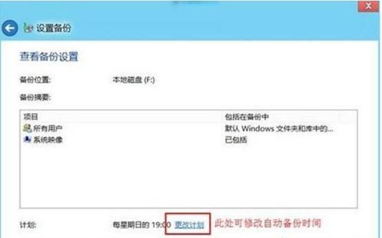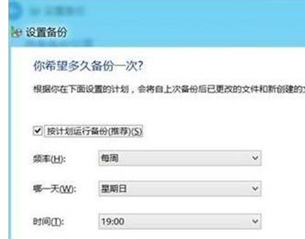 6、此時(shí)便可看到默認(rèn)的計(jì)劃備份時(shí)間,如需更改點(diǎn)擊更改計(jì)劃即可。設(shè)置完成后點(diǎn)擊“保存設(shè)置并運(yùn)行備份”;