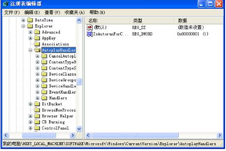 在開始-運行中輸入“Regedit”命令,找到名稱為HKEY_LOCAL_MACHINE\SOFTWARE\Microsoft\Windows\CurrentVersion\Explorer\AutoplayHandlers的信息后,將鍵值設定為EHome即可。