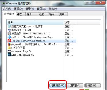 2.如果不行的話,我們可以按Ctrl+Alt+Delete組合鍵打開任務(wù)管理器,選擇假死未響應(yīng)的程序或進(jìn)程,點(diǎn)擊結(jié)束任務(wù)。
