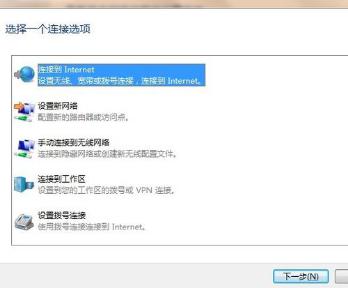 2、在彈出的界面中選擇第一項:連接到internet,點擊下一步。