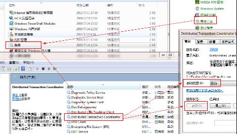 5. 開(kāi)啟容易被忽略的服務(wù) :依次點(diǎn)擊進(jìn)入“控制面板——管理工具——服務(wù)——DistributedTransaction Coordinator” 。把此服務(wù)設(shè)置成自動(dòng),同時(shí)啟動(dòng)它 。