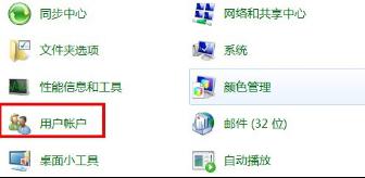 1、首先進(jìn)入控制面板,在控制面板功能項(xiàng)中選項(xiàng)用戶賬戶;