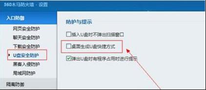 3、借助第三方工具,比如360安全衛(wèi)士等很多殺毒軟件有這樣的功能,這里以360安全衛(wèi)士演示:打開360,然后選擇軟件右邊窗口的木馬防火墻選項(xiàng),在打開的木馬防火墻窗口中,單擊窗口頂部的設(shè)置選項(xiàng),選擇U盤安全防護(hù),勾選“生成桌面U盤快捷方式”即可在桌面上顯示U盤圖標(biāo)了。