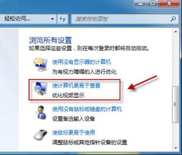 3、在彈出的窗口中,拉動(dòng)滑塊到“瀏覽所有設(shè)置”,然后單擊“使計(jì)算機(jī)更易于查看”。