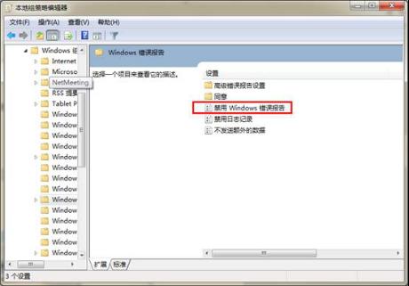 3、雙擊“Windows錯誤報告”后,在右側窗口中雙擊“禁用Windows錯誤報告”。
