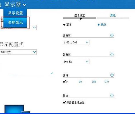 4、點擊顯示器,在下拉菜單中選擇多屏顯示,實現投影儀切換選項;