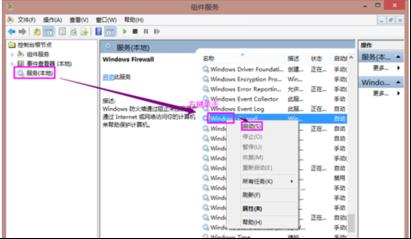 2、在彈出的“組件服務(wù)”中點(diǎn)擊左側(cè)窗口中的服務(wù),在出現(xiàn)的右側(cè)服務(wù)列表找到windows firewall,然后右鍵單擊選擇“啟用”即可。