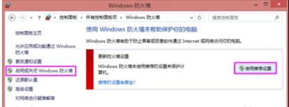 2、在彈出的窗口中,點(diǎn)擊“使用推薦設(shè)置”或“啟用windows防火墻功能”來啟用防火墻即可。
