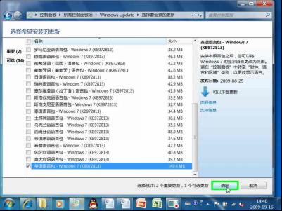 3、這里就可以發(fā)現(xiàn)所有可以使用的語言包,然后勾選需要的語言包,點擊“確定”。