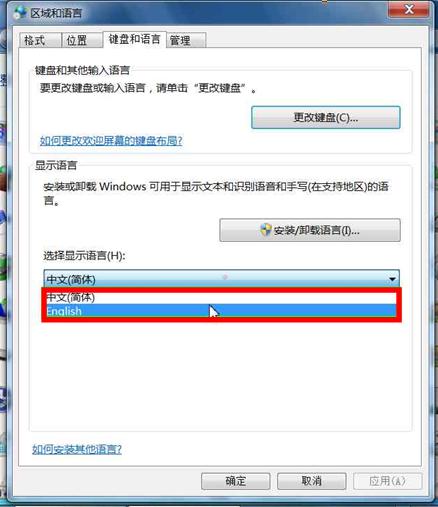 6、然后在鍵盤和語言選項卡下,找到選擇顯示語言,這里切換成已安裝的語言即可。