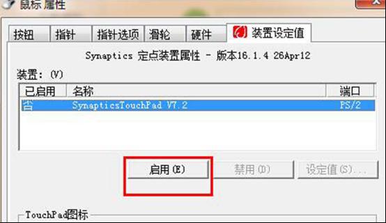 4、如果想再次開啟的話,同樣的方法,在打開的鼠標屬性中點擊“啟用”按鈕,啟用成功后點擊應(yīng)用就可以了,非常簡單。