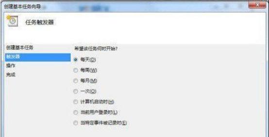 3.輸入新建任務(wù)的名稱和描述,點(diǎn)擊“下一步”按鈕。在“觸發(fā)器”選項(xiàng)中選擇自己需要的執(zhí)行頻率,比如是每天、每周、每月還是單次等等,繼續(xù)下一步。