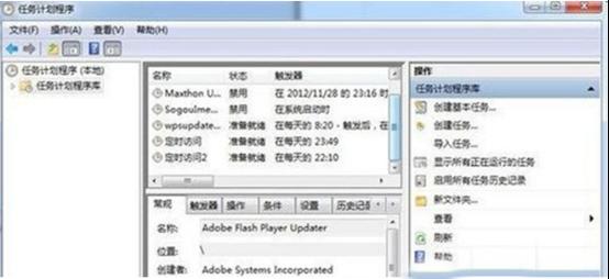 6.在Win7系統(tǒng)的任務(wù)計(jì)劃程序設(shè)置面板中可以看到剛才設(shè)定的“定時(shí)關(guān)機(jī)”任務(wù),下方按類型列出該任務(wù)的詳細(xì)信息。右鍵單擊任務(wù),可以從右鍵單擊中對(duì)任務(wù)進(jìn)行靈活操作,比如運(yùn)行、結(jié)束、禁用、導(dǎo)出、屬性、刪除等等,非常方便。