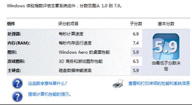 每個硬件組件都會接收單獨的子分數(shù),子分數(shù)是計算機的處理器(CPU)、內(nèi)存(RAM)、硬盤(HDD)、Aero桌面圖形、 3D 游戲圖形5個硬件組件上測試的結果,其分數(shù)范圍是 1.0 到 7.9區(qū)間。計算機的基礎分數(shù)不是合并子分數(shù)的平均數(shù),而是由最低的子分數(shù)確定的。例如,如果某個硬件組件的最低子分數(shù)是 5.9,則基礎分數(shù)就是 5.9。
