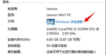 Windows 7的系統(tǒng)中打開計算機的屬性,在分級一覽中點擊“Windows體驗指數(shù)”,便能查看及更新系統(tǒng)分數(shù)了。