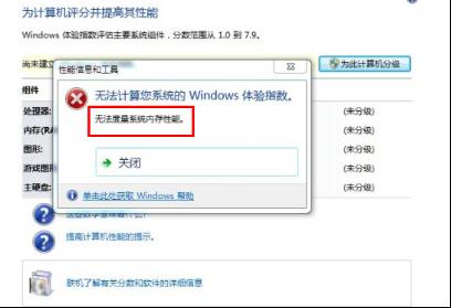 另外,在Windows 7系統(tǒng)中評分支持最大單個CPU的三級緩存是16M,如果超過的話,就會出現(xiàn)“無法度量系統(tǒng)內(nèi)存性能”的報錯。對于目前的I3、I5、I7 系列的CPU均不會超過此范圍,只有一些至強Xeon的CPU超過此范圍。