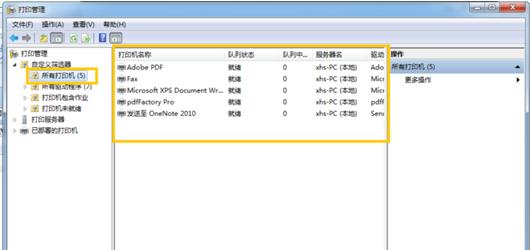 1、點(diǎn)擊“開始——控制面板——管理工具——打印管理——所有打印機(jī)”。