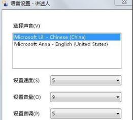 3、在語音設(shè)置選項中選擇聲音,有中文和英文兩個選項,還可以改變音調(diào)、音量和語音速度,滿足你自己的個性化聽音需求。