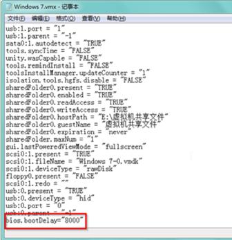 | Windows 7,中文名稱視窗7,是由微軟公司(Microsoft)開發(fā)的操作系統(tǒng),內(nèi)核版本號(hào)為Windows NT 6.1。Windows 7可供家庭及商業(yè)工作環(huán)境:筆記本電腦 、平板電腦 、多媒體中心等使用。Windows 7可供選擇的版本有:入門版(Starter)、家庭普通版(Home Basic)、家庭高級(jí)版(Home Premium)、專業(yè)版(Professional)、企業(yè)版(Enterprise)(非零售)、旗艦版(Ultimate)。 當(dāng)用戶需要進(jìn)入VMware虛擬機(jī)的BIOS設(shè)置界面時(shí),是否會(huì)遇到由于虛擬機(jī)啟動(dòng)畫面停留時(shí)間太短導(dǎo)致無法進(jìn)入的問題,如果為此問題困擾時(shí),今天小編教你如何延長(zhǎng)系統(tǒng)之家win7純凈版iso系統(tǒng)VMware虛擬機(jī)啟動(dòng)畫面時(shí)間,請(qǐng)趕快來看看吧,具體操作步驟如下:1、在需要延長(zhǎng)虛擬機(jī)啟動(dòng)畫面的對(duì)應(yīng)虛擬機(jī)所在文件夾上雙擊打開 2、虛擬機(jī)文件夾中找到后綴為.vmx的文件,然后在.vmx文件上右鍵選擇“打開方式——記事本”。 ![]() 3、在打開的記事本文件中輸入以下代碼: bios.bootDelay="8000" (此里的8000代表8秒,也就是說這里是以毫秒計(jì)算,數(shù)字1000就代表1秒,用戶可根據(jù)自己的需要來設(shè)置延長(zhǎng)的時(shí)間) ![]() 4、按“Ctrl+S”保存修改,如果不放心是否保存到,可多按幾次“Ctrl+S”,關(guān)閉記事本。 通過以上設(shè)置后,下次打開win7 32位虛擬機(jī),就不會(huì)因虛擬機(jī)啟動(dòng)畫面停留時(shí)間太短而無法進(jìn)入了,它的啟動(dòng)畫面停留時(shí)間就是你所設(shè)置的時(shí)間了。 windows 7 的設(shè)計(jì)主要圍繞五個(gè)重點(diǎn)——針對(duì)筆記本電腦的特有設(shè)計(jì);基于應(yīng)用服務(wù)的設(shè)計(jì);用戶的個(gè)性化;視聽娛樂的優(yōu)化;用戶易用性的新引擎。 跳躍列表,系統(tǒng)故障快速修復(fù)等,這些新功能令Windows 7成為最易用的Windows。 |