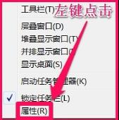 1、在任務(wù)欄空白處右鍵選擇“屬性”,打開“任務(wù)欄和開始菜單屬性”。