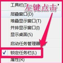 1、在任務(wù)欄空白處右鍵點(diǎn)擊,去掉“鎖定任務(wù)欄”前面的勾選。