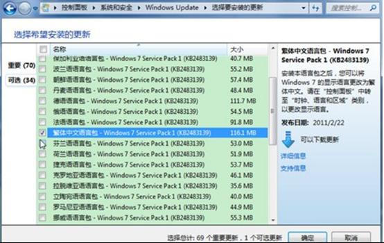 2、在彈出的窗口左下方有Windows Update選項(xiàng),運(yùn)行Windows Update功能,待Win7系統(tǒng)自動(dòng)檢測(cè)來(lái)自微軟的所有更新補(bǔ)丁,點(diǎn)擊“可選更新”,在windows7 language packs中選擇自己需要的語(yǔ)言包,比如繁體中文或英文,然后進(jìn)行下載補(bǔ)丁,并按提示安裝補(bǔ)丁。在這里注意無(wú)需全部下載,根據(jù)自己需求下載,否則浪費(fèi)磁盤空間,另外其它系統(tǒng)提示的補(bǔ)丁,也需要根據(jù)你自己的需要和實(shí)際情況來(lái)選擇。