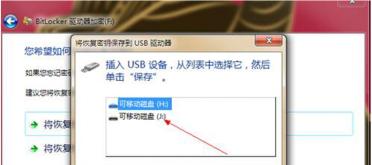 3、為了防止密碼遺忘或丟失的情況發(fā)生,系統(tǒng)會(huì)提示三個(gè)選項(xiàng),建議選擇第一項(xiàng)U盤來保存密鑰,選擇后插入U(xiǎn)盤就會(huì)自動(dòng)生成密鑰文件,這樣就可以防止密碼丟失造成不可預(yù)估的后果了。