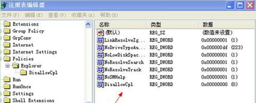3、然后將右側窗口中刪除“DisallowCpl”;
