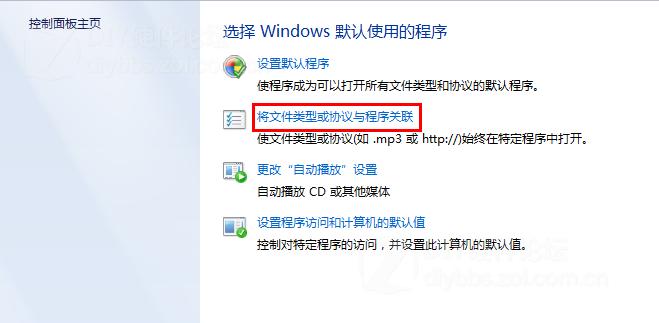 3、點(diǎn)擊打開(kāi)“將文件類型或協(xié)議與程序關(guān)聯(lián)”