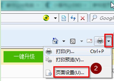 1、打開(kāi)IE瀏覽器,在IE瀏覽器右上角的找到并點(diǎn)擊打印圖標(biāo)旁有個(gè)下拉的小三角按鈕,在彈出的下拉菜單中點(diǎn)擊“頁(yè)面設(shè)置”。