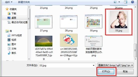 5、點擊“瀏覽更多圖片”后,會彈出一個“打開”窗口,選擇“自己喜歡的圖片”。