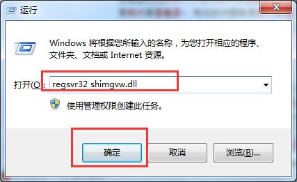 1、按“Win+R”打開“運(yùn)行”窗口,然后輸入regsvr32 shimgvw.dll命令后按回車。