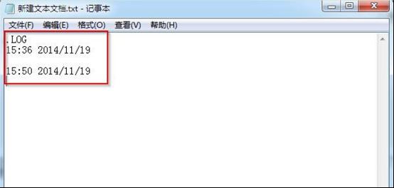 2、當(dāng)你再次打開記事本文件的時(shí)候,奇跡發(fā)生了,剛才的文件中出現(xiàn)了當(dāng)前時(shí)間,這種方式每次打開都會(huì)產(chǎn)生一個(gè)時(shí)間的。